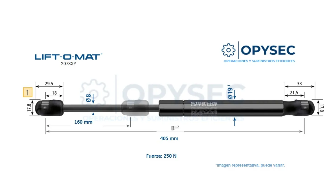 AMORTIGUADOR Lift o Mat 752819 100N DE FUERZA 405MM LARGO TOTAL, 160MM DE CARRERA
