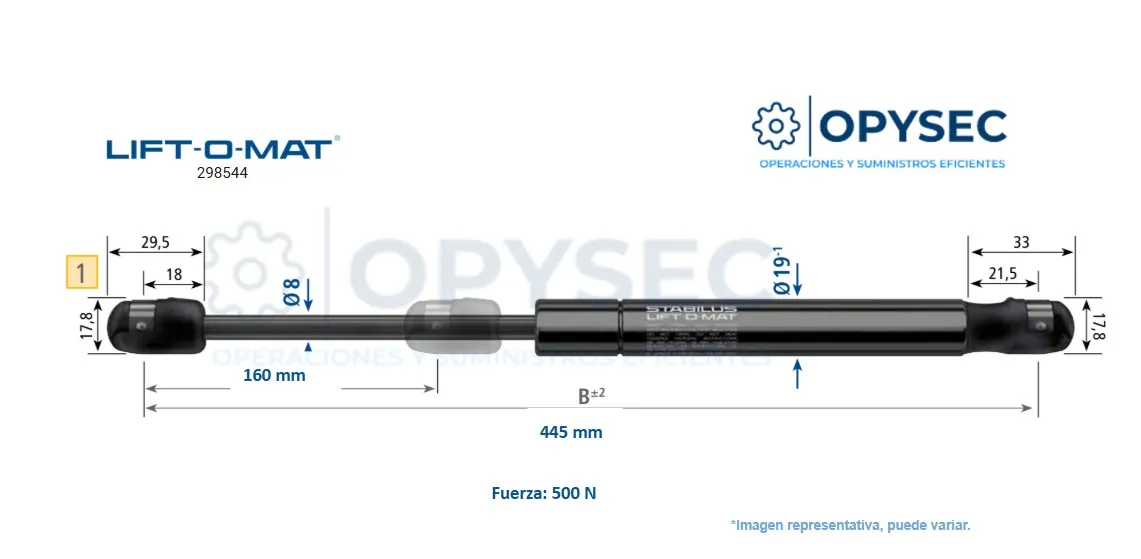 AMORTIGUADOR Lift o Mat 298544 500N DE FUERZA 445MM LARGO TOTAL, 160MM DE CARRERA